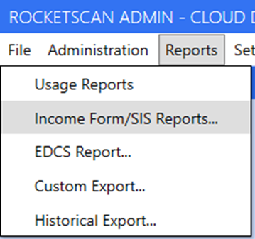 Step 2 - Once in ADMIN, Choose "Reports” and then “Income Form/SIS Reports..."