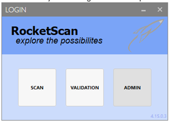 Step 1 - In RocketScan, choose ADMIN Module