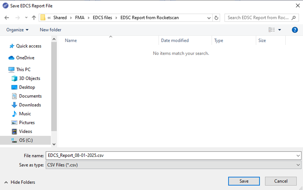 Once the file is exported from RocketScan, follow the State instructions to import in the EDCS system.