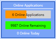 The next box is the Online Status . The top bar shows how many online applications you have processed and the second bar indicates how many online applications you have left that you can process according to your license with Image One. The bottom of the box indicates how many online applications came in during the current day.