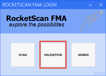Log in to RocketScan. From the RocketScan Launch Pad, click on the Validation button.