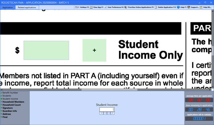 If you are using RocketScan to process both FMA and Income Forms and there are both types of applications waiting for Validation, then you will be prompted to select which type you would like to work on. Select Income Forms and click Validate .