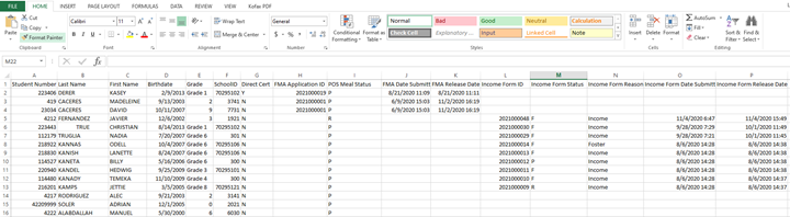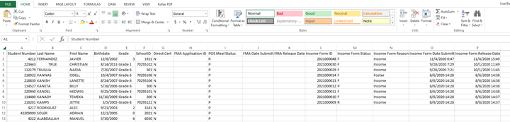The report will be generated as a CSV (comma separated values) file. Sample for ‘Current’ report without the Rocketscan FMA NSLP applications included.