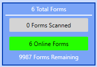 The Income Forms Status box shows how many total Income Forms have been processed, how many of those forms were scanned, how many of those forms were from online, and how many forms you have left that you can process according to your license with Image One.