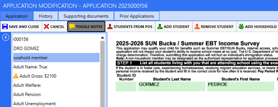 NOTE: If there are multiple students on the application, all applications with that household member must be sent to hold to be able to edit it.